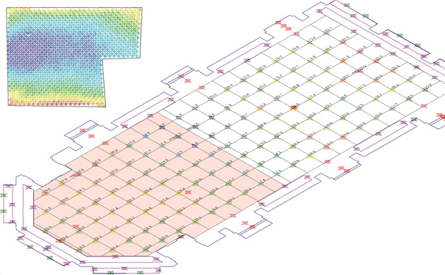 Różnice w wysokościach są sygnalizowane kolorami. Dzięki temu w oprogramowaniu pomiarowym FlexiCAD można w prosty sposób sprawdzić, jak duże są nierówności danej powierzchni.