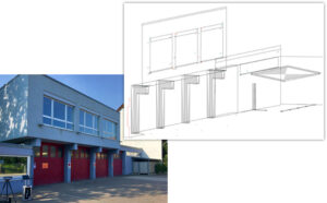 Dzięki wykorzystaniu dwóch punktów referencyjnych, które są dostępne z obu lokalizacji, system Flexijet 3D może zostać ponownie zorientowany, co pozwala na płynne kontynuowanie pomiarów. W ten sposób można z łatwością ująć całe piętra lub kompletne budynki w ramach jednego, spójnego rysunku CAD.