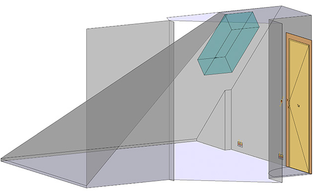 W tym celu nie jest konieczne celowanie w narożniki pomieszczeń. Oprogramowanie automatycznie przycina linię prostą ściany w miejscu, w którym styka się ona z przedłużeniem linii sąsiedniej ściany. Dzięki temu wszystkie kąty łączących się ze sobą ścian są precyzyjnie wykrywane już podczas szybkiego pomiaru na miejscu.Dokumentację pomieszczenia można uzupełnić zgodnie z potrzebami, mierząc pozostałe elementy, takie jak skosy dachu, drzwi czy okna, a także wstawiając symbole instalacyjne dla różnych mediów.
