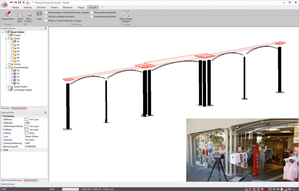 W przeciwieństwie do innych systemów pomiarowych, Flexijet 3D nie generuje nieczytelnej chmury punktów. Zamiast tego punkty pomiarowe są bezpośrednio łączone w logiczne struktury za pomocą komend rysunkowych CAD. Gotowy rysunek CAD powstaje już w trakcie pomiaru na miejscu, bez konieczności czasochłonnej obróbki końcowej, która jest niezbędna w przypadku chmur punktów.